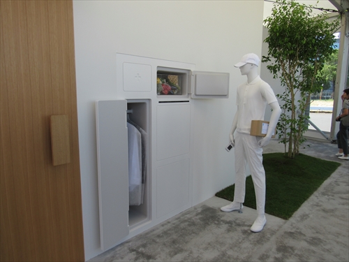 このモデルハウスは新しい「宅配ロッカー」を戸建て住宅に設置。宅配便対応だけでなく、生鮮食品の受け取りなど様々な生活シーンを想定して多用途に進化させた。