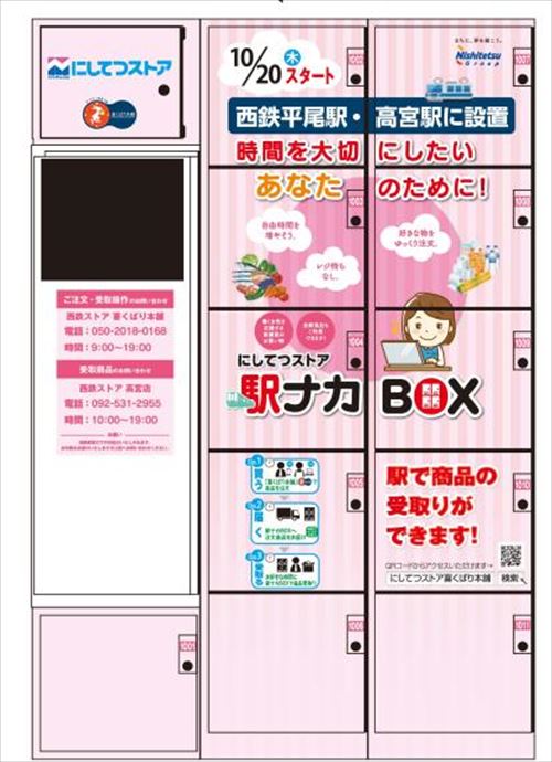 (株)西鉄ストアは10月20日より、ネットスーパーで注文した商品を西鉄電車の駅で受け 取れる新サービス「駅ナカボックスサービス」を開始する。