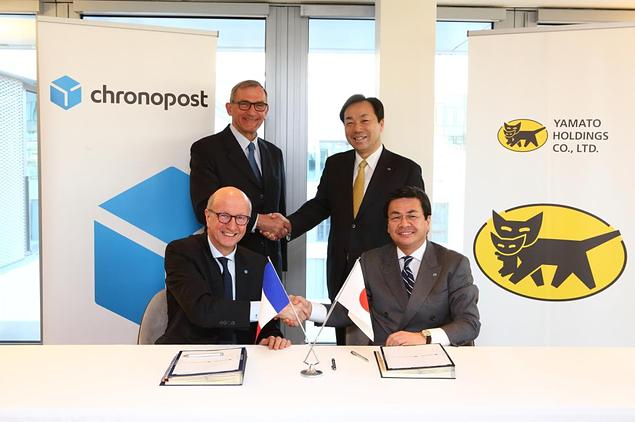ヤマトホールディングス(株)と、欧州第2位の国際エクスプレス事業を行うDPDグループに属し、フランス国内最大手のエクスプレス事業者のクロノポスト社は4月7日、日仏間のクロスボーダー小口保冷輸送ビジネスの拡大と、両社が持つ小口保冷輸送に関するノウハウを共有するクロスライセンスを含む包括的なパートナーシップ契約に締結。フランスパリにて調印式を行った。
