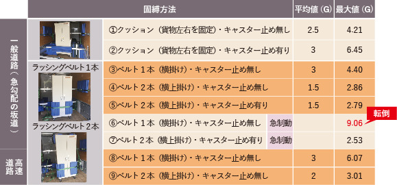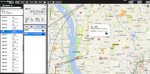 ●トラックデジタコシステムの画面(上)、輸送中の荷台にある貨物の状態・変化の数値化(中・下)
