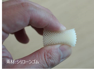 ●サービス概要(上)、3Dプリンタの造形物(シリコーンゴム)(中)、3Dプリンタの造形物素材(透明樹脂)(下)