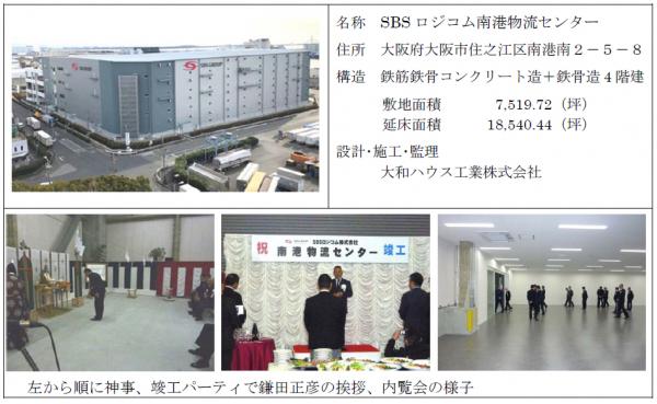 SBSロジコム(株)は3月19日に約50名の関係者が参列し、「南港物流センター(大阪市住之江区、2017年12月に着工)」の竣工式・内覧会を執り行ったと発表した。