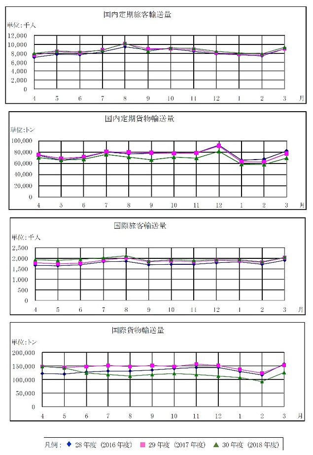 国土交通省は5月31日、平成31年3月分の航空輸送統計速報を以下の通り、発表した。なお、貨物輸送の( )内は超過手荷物、郵便物を含む数値。国内定期航空輸送実績にはコミューター航空輸送実績が含まれる。
