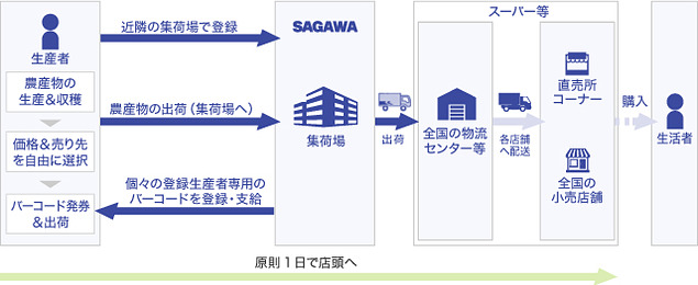 両社は2017年7月から長野県須坂市の佐川急便施設(長野営業所)を活用した集荷場運用のトライアルを実施。同トライアルで地元生産者に対して販路拡大に一定の効果が見込めたことから2019年1月から本格運用を開始している。