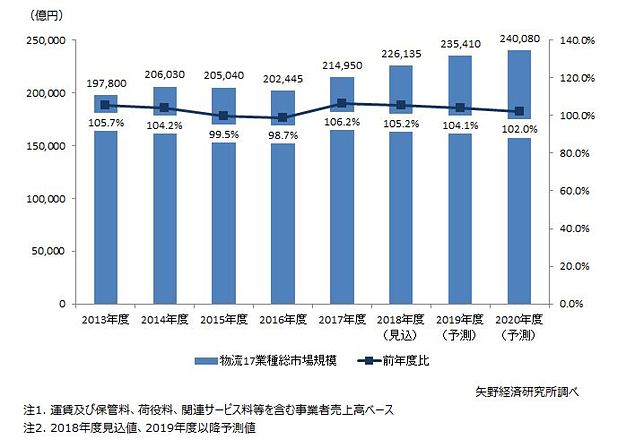(株)矢野経済研究所は7月、物流17業種総市場の調査結果を発表した。