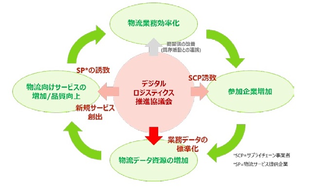 同協議会はサプライチェーンの全体最適を実現し、社会への貢献を目的として物流情報のデジタル化・標準化、企業間の共同利用に向けた検討を行う会となる。