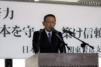 ●齋藤社長による訓示(上)、関東警送支店での訓練の様子(下)