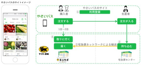 やさいバスのノウハウと、ヤマト運輸が地域で培った顧客接点を活かし、地方でこだわりの農産物を栽培している生産者と、高品質で安心安全な野菜や果物を購入したいと考える販売店や消費者を、直接「つなぐ」ことで地域活性化に貢献するとともに、より多くの消費者が利用できるよう、受け取り拠点として宅急便センターを展開する等、取り扱いエリアの拡大を目指す。