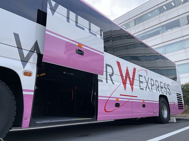 ウィラーエクスプレスは229台のピンクのバスを保有し、全国主要都市を20路線・297便/日で結び、年間約300万人を超える顧客が利用する国内トップクラスの高速バス会社(数字は2019年末のもの)。