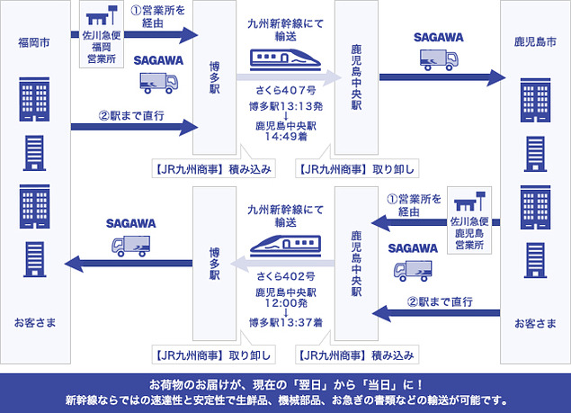 これにより、福岡市と鹿児島市間で宅配便の即日配達が可能になる。