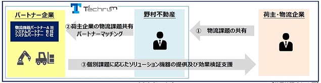野村不動産(株)は9月29日、物流に係る様々な課題解決を目指す企業間共創プログラム「Techrum(テクラム)」について、2021年10月より効果検証に着手すると発表した。