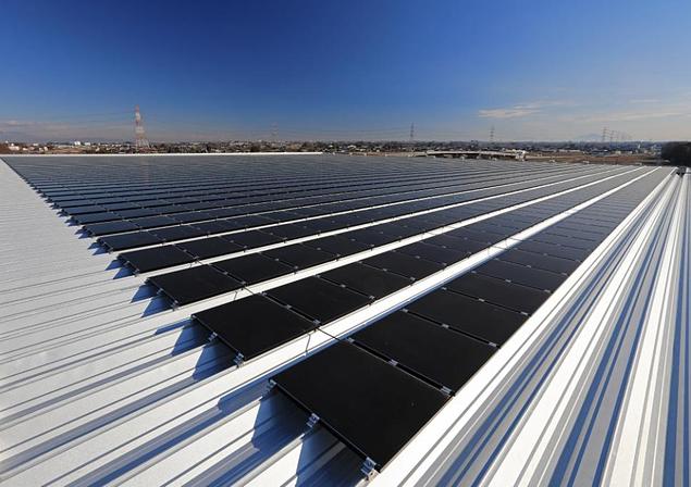 ●ロジスクエア久喜Ⅱ全景(上)、倉庫内(中)、屋上太陽光発電設備(下)