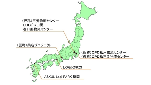 今回、埼玉県白岡市、埼玉県入間郡三芳町、千葉県松戸市(2物件)、大阪府枚方市、福岡県福岡市において6物件を新たに取得(開発型SPCへの出資を含む)し、物流施設の開発を加速させる。