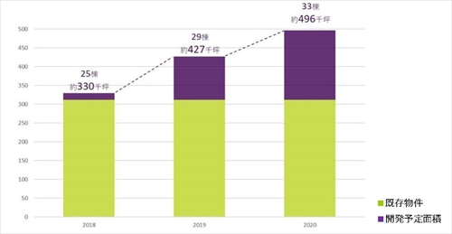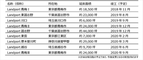同期間における開発棟数は全9棟(延床面積:約18万5,000 坪)となり、物流施設の開発・運用棟数の累計は33棟、総延床面積は約49万6,000 坪となる見込みだ。(Landportシリーズ以外の物流施設も含む)