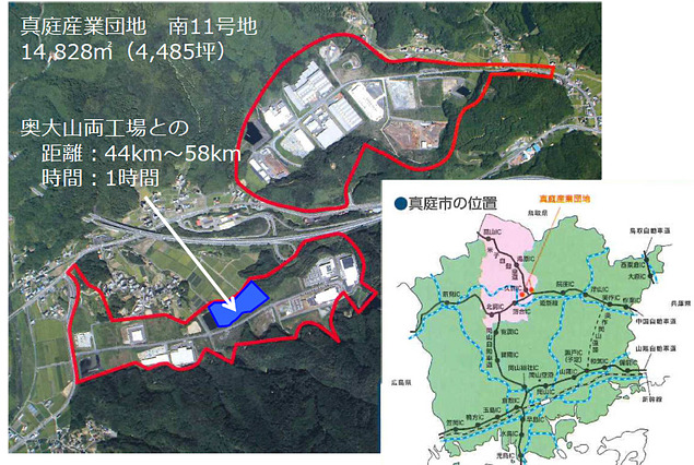 米子自動車道・久世IC近くの真庭産業団地内の1万4,828平方メートル(4,493坪)の敷地に8月に着工し、来年3月の竣工、稼働開始を計画している。投資額は土地代約1億5,000万円を含む約13億円。