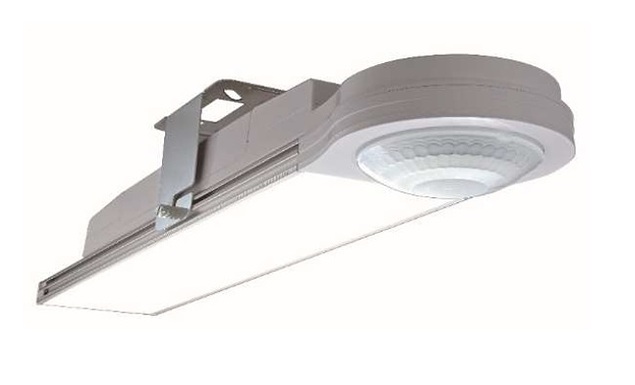 「エコセンサー」は待機時に制御するLED照明の約20%の照度で補助灯が点灯するため、安全性の確保が可能。制御したい既存LED照明の周辺に設置する。