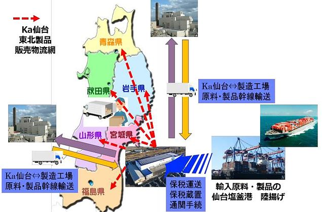 同センターは2016年3月に竣工した365日24時間稼働の4温度帯対応倉庫で、仙台東部道路の仙台東ICから3km、仙台塩釜港から約7kmの至近距離に位置していることから、東北エリアや全国へのアクセスにも優れており、食品・日用品等の在庫保管・流通加工と各納品先への効率的な配送拠点として運営している。