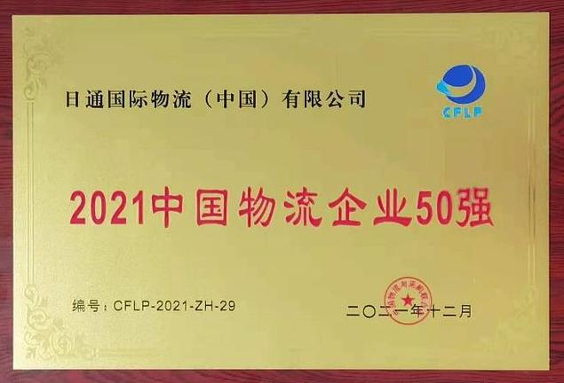 NX国際物流(中国)、中国物流企業トップ50受賞
