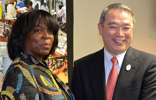 ●国連WFP事務局長アーサリン・カズン氏(左)とNEC代表取締役会長遠藤信博氏(右)