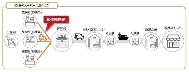 (株)農業総合研究所(NSK)は7月22日、日本郵便(株)(JP)四国支社、(株)世界市場の3社共同で、香港向け農産物の輸出業務を開始した。