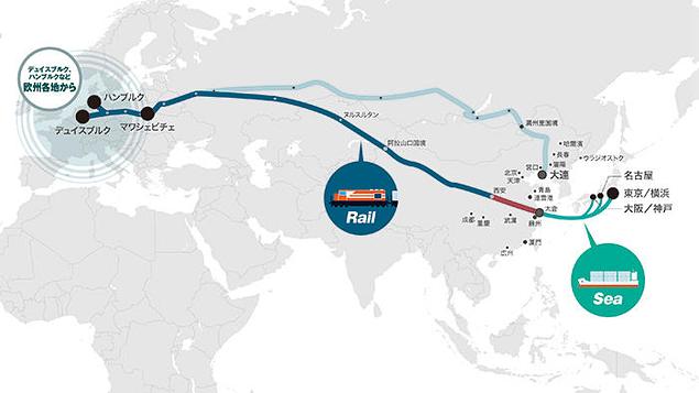欧州のドイツ・ハンブルグとデュイスブルグ、ポーランド・マワシェビチェから中国・西安までの鉄道輸送と太倉港から日本の主要港(東京/横浜/名古屋/大阪/神戸)までの海上輸送を組み合わせた複合一貫輸送サービス。欧州の各鉄道ターミナルから日本の主要港までのリードタイムは26~28日となる。