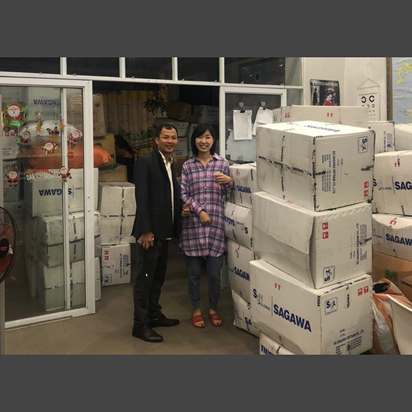 SGVに対し、NIJI日越交流センターからダナン補習校、ダナン商工会議所を通じて支援物資の要請があり、当地商工会議所(JCCH、JCCD)、ホーチミン市内みらい幼稚園、各企業、個人、団体等から支援物資提供を募り、第1便として11月4日に物資の輸送を実施。さらに第2便として、KIEN GIANG第2小学校からの支援要請に応じ、11月8日に支援物資を輸送。12月中にはさらに第3便も発送予定としており、SGV従業員も支援物資の提供に協力するなど、SGV全社を挙げて被災者支援を行っている。