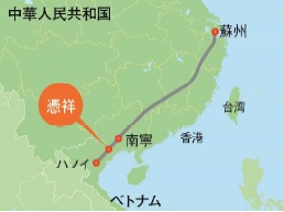 ・多くの企業が集積する華東エリアに位置する蘇州西駅を発駅とし、南寧南駅を経由し、イェンビエン駅(ハノイ)に到着する。
