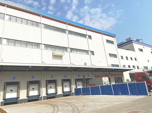 新センターは上海港から約40㎞、虹橋空港から約13㎞に位置し、上海市と近郊主要エリアを繋ぐ高速道路へもアクセスが良く、上海市および近郊地区をカバーできる好立地にあり、シノトランスエアのグループ会社が所有する倉庫の一部を賃借し、日本品質のサービスを提供できるよう改造。延床面積約3,830平方メートルの2階建て冷凍・冷蔵倉庫で、トラックバースにはドックシェルター8基を備え、外気温に触れることなく保管商品の荷捌きが可能。移動ラックやドックレベラー、垂直搬送機の導入で荷役効率の向上を図るほか、冷凍・冷蔵設備も日本製の省エネ型の自然冷媒冷凍機を採用し、CO2排出量削減にも配慮している。