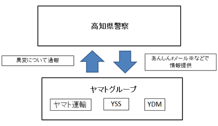 ヤマトグループ3社は集配中に犯罪の前兆となる異変を察知した際に高知県警に情報を共有。また、地域の見守りの目を増やすため、「地域見守り隊」のステッカーを車両に貼り、腕章をつけることで、犯罪の未然防止に努める。