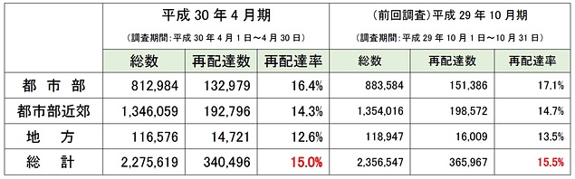 平成30年4月期の宅配便再配達率は約15.0%に