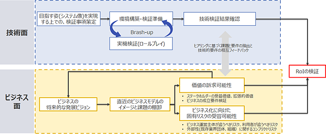 ブロックチェーンを活用した新規ビジネスの創出を支援。ビジネスロードマップに従い、技術面とビジネス面の両輪で検討・検証を重ねながら実現に向けて進めていく。