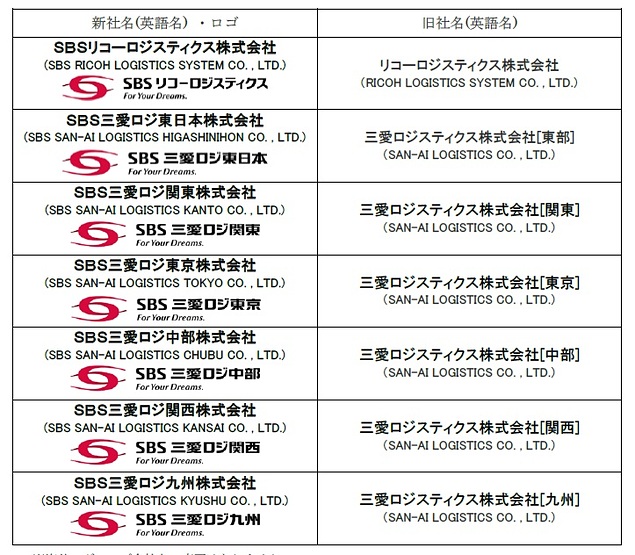 SBSグループのリコーロジスティクス(株)は、2019年1月1日付で同社およびグループ各社の商号とロゴを以下の通り、SBSブランドの新社名に変更する。