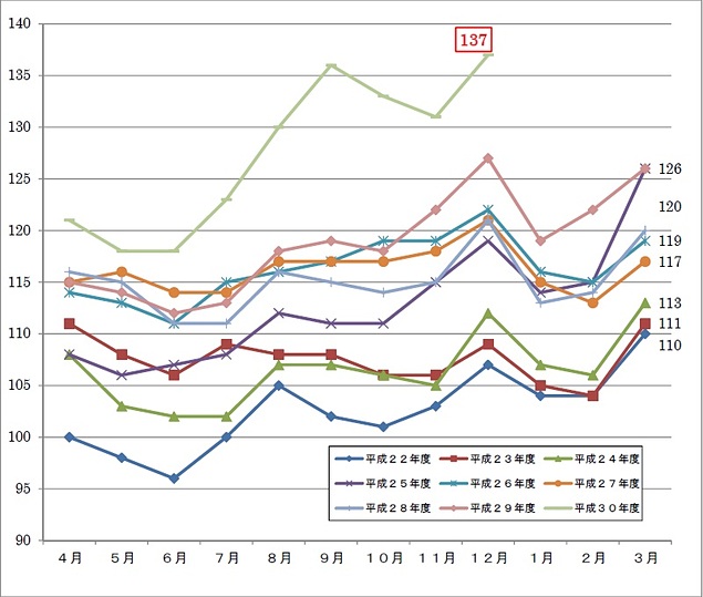 (公社)全日本トラック協会と日本貨物運送協同組合連合会は1月8日、平成30年12月分の求荷求車情報ネットワーク(WebKIT)成約運賃指数が前月比6ポイント増、前年同月比10ポイント増の137になったと発表した。