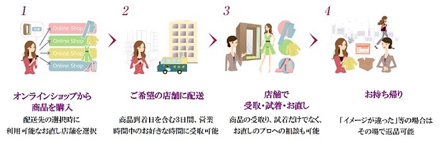 オンライン購入した洋服の受け取り・試着・直しを提供
