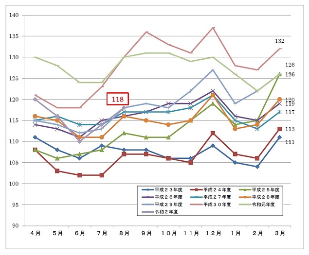 (公社)全日本トラック協会と日本貨物運送協同組合連合会は9月1日、令和2年8月分の求荷求車情報ネットワーク(WebKIT)成約運賃指数が前月比5ポイント増、前年同月比12ポイント減の118になったと発表した。