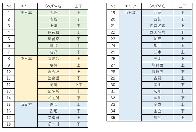 ●場所:NEXCO東日本・中日本・西日本エリア全国35か所の主要サービスエリア