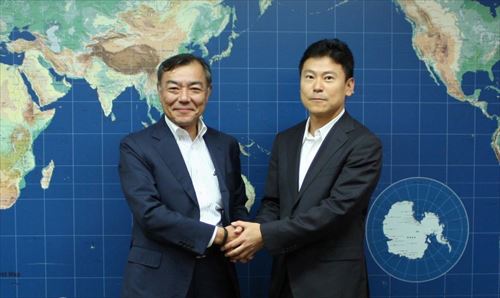 ●トーヨーカネツソリューションズ(株)代表取締役社長:柳川徹氏(左)、(株)イシダ代表取締役社長:石田隆英氏(右)