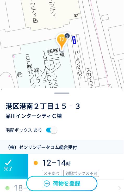 その時間帯に必要な荷物情報のみを地図上で確認できる。