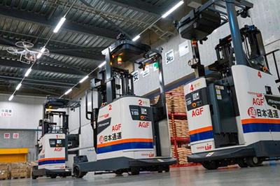 日本通運(株)は7月8日、同社札幌支店(札幌市白石区)の倉庫で自動走行するフォークリフト(AGF)とオートレーター(自動垂直昇降機)の連携による自動化システムを実稼働させ、夜間における出荷準備作業を無人化したと発表した。