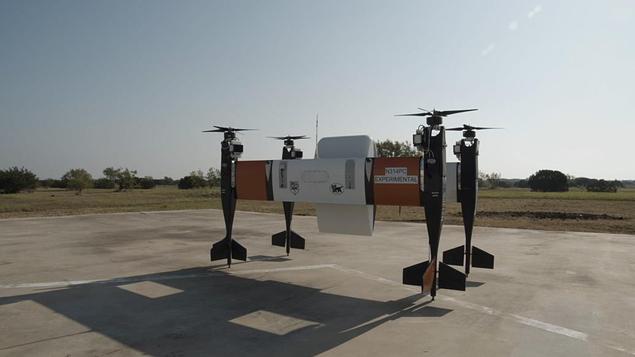 テイルシッター型の電動垂直離着陸機に革新的なペイロードポッドを搭載。同機は時速100マイル(時速160km)以上の速度で飛行し、70ポンド(32kg)の積載量になる。APTの能力によって完全に別次元の輸送サービスやオペレーション効率の向上が実現できる。