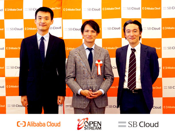 ●授賞式の模様。左よりアリババクラウド・ジャパンサービスのユニーク・ソン氏、オープンストリームの吉原氏、SBクラウド代表取締役 兼 CEOの内山敏氏。