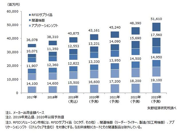 2018年国内RFID関連市場は前年比6.2%増