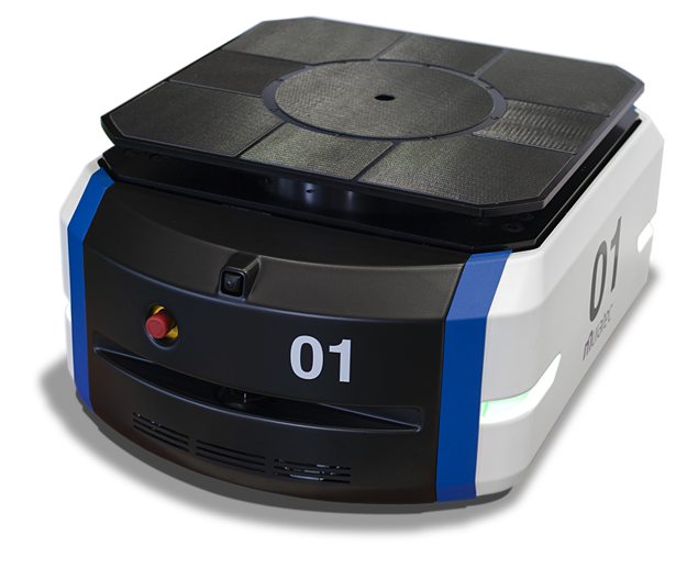 幅700mm×全長985mm×高さ350mmのコンパクトボディで、最大荷重1tのパレット積載が可能な小型低床式AGV。コンパクトな機体により、生産設備の間や下の狭い空間も、最高走行速度120m/minで走行する。本体(駆動部)と荷物を移載するターンテーブルがそれぞれ独立して360度旋回するため、各種装置へのアクセスや、荷姿方向を配慮した移載も容易。障害物を検知するセーフティースキャナを搭載し、狭い通路に複数台の安全走行を可能にしている。