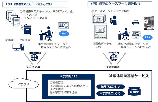 利用方法は取引先から送られてきた「INVOICE」や「PACKING LIST」といった貿易書類をスキャンしてクラウド上にある文字認識エンジンで処理し、読み取り結果がテキストやCSVデータとして保存されるため、基幹システムへの入力作業の効率化につながる。