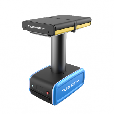 Suzhou Mushiny Intelligent Technology Co., Ltd.製のケースハンドリングロボット(自動倉庫ロボット)。ケースを保管するスペースを持ったロボットが、棚の間を走行し、左右にケースを振り分けながら入出庫するシステム。ロボットが作業者の代わりに保管エリアから入出庫エリアに自走しながらケースを運ぶ。