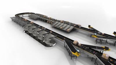●Interroll製垂直型クロスベルト・ソータ・システム