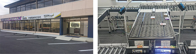 ●テックセンター北関東の外観とMDR式マテハン展示機