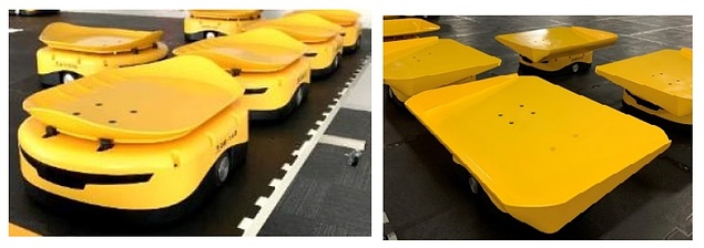 同社ラインナップのうち「t-Sort」は、無⼈搬送⾞(AGV)により物品を搬送し、少⼈数・短期間・⼤量の仕分け作業を実現する「全設備可動式の次世代型ソーターシステム」。従来の固定ソータと⽐較し⾼い柔軟性(物量に合わせて台数・⾯積を変化させ処理能⼒増減可、⾃由にレイアウト変更可、空きスペースに配置可)と機動⼒(導⼊・ 撤去短リードタイム、故障時はロボット交換可)を持つことに加え、省スペース(固定ソータ⽐、最⼤半分以下のスペ ースで設置)での運⽤を実現する。