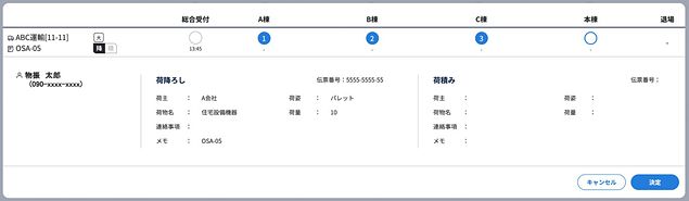 管理者はドライバーの受付情報と各拠点の混雑状況を確認しながら、各拠点を巡る順を割り当てることができる。