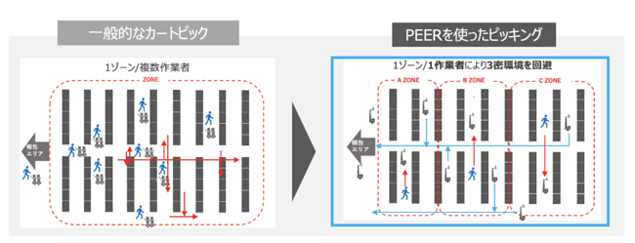 ●「PEER SpeeMa+」(上・中)、GROUNDが推奨するゾーンピッキング例(下)
